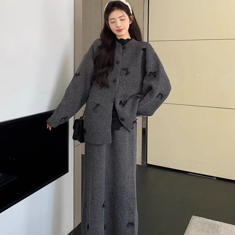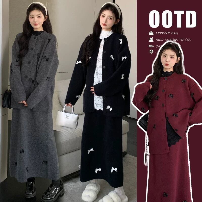 大きいサイズ プラスサイズ リボンニット+スカート セットアップ 大きいサイズ マタニティウェア 妊婦服 出産準備 かわいいマタニティウェア fm25102401