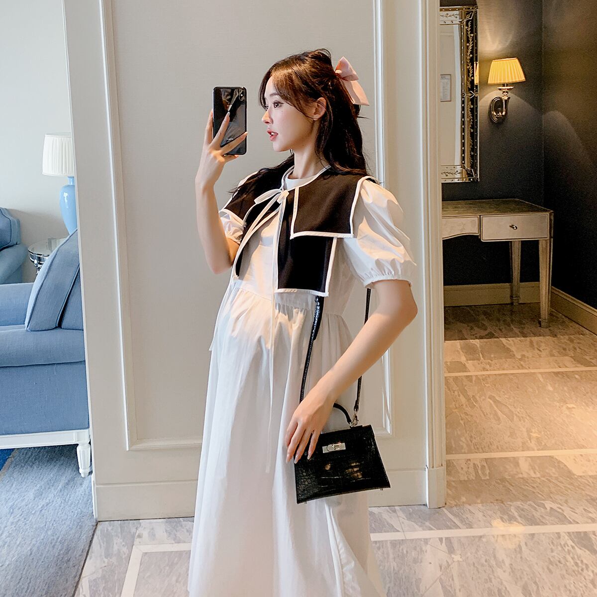 スプリングホワイトワンピース おしゃれ かわいい マタニティウェア スプリングサマーロング コットン 春物 夏物 スカート hotmom95767487860