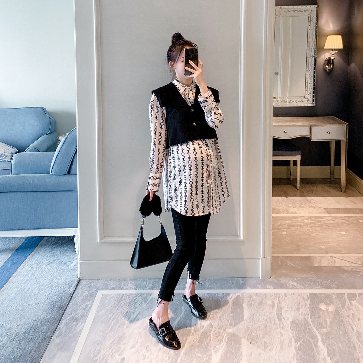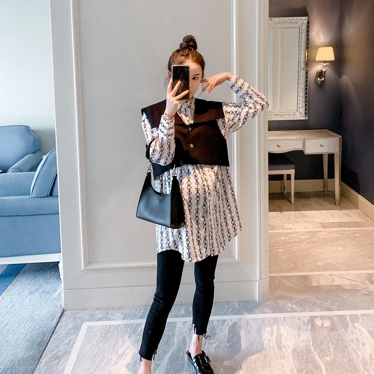 ベスト付き シャツワンピースおしゃれ かわいい マタニティウェア セット スリーブジャケット ルーズシャツ 長袖プリントトップス ロング 大きめサイズ ノースリーブ hotmom49742968717