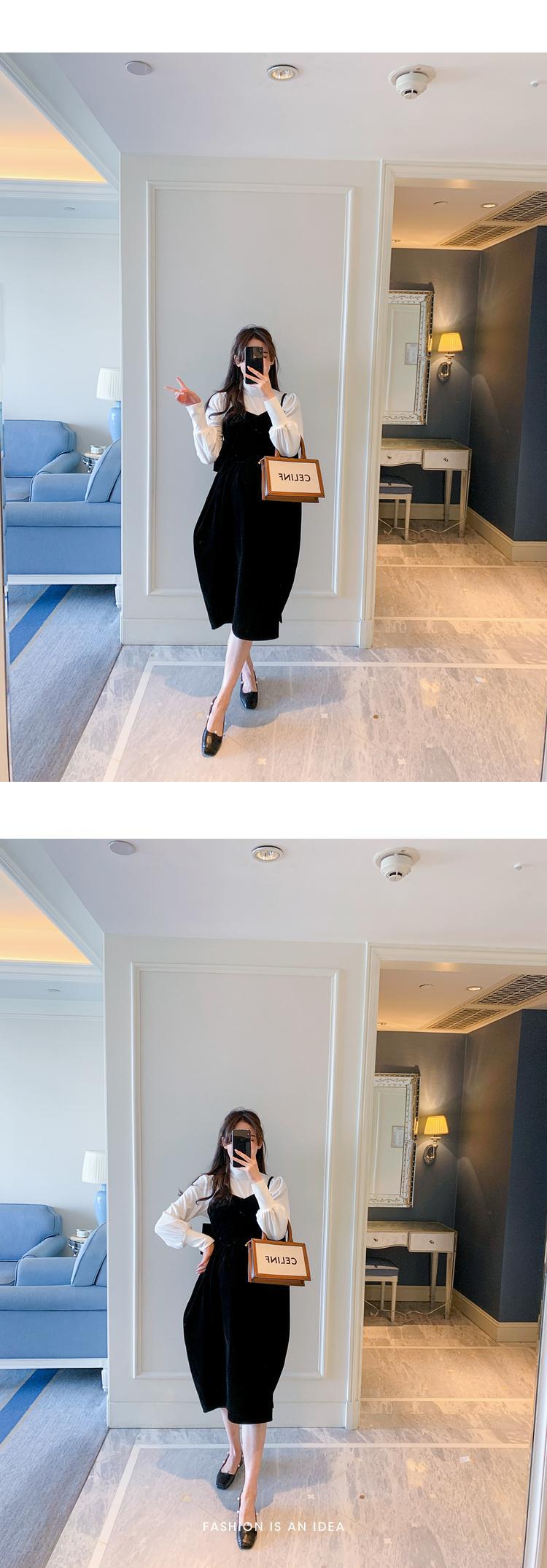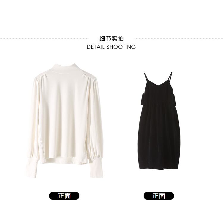 色:白い長袖,ブラックサスペンダースカート,白長袖+黒サスペンダースカート