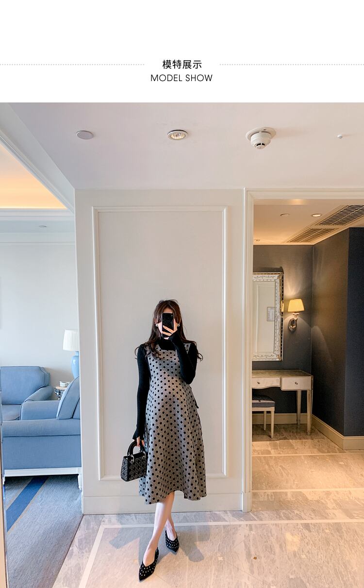 楽々2点セット おしゃれ かわいい マタニティウェア コーデュロイドレス スカート 水玉ニットシャツ hotmom92904172216