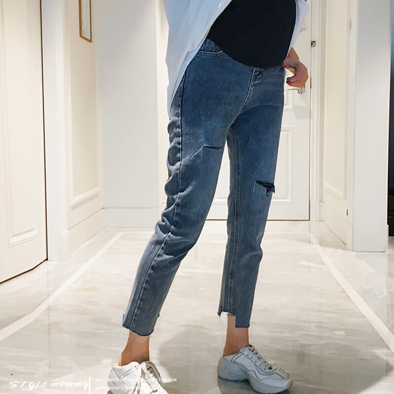 ダメージ デニム おしゃれ かわいい マタニティウェア ジーンズ パンツ スプリングオータムルーズ 春物 秋物 hotmom72759078377