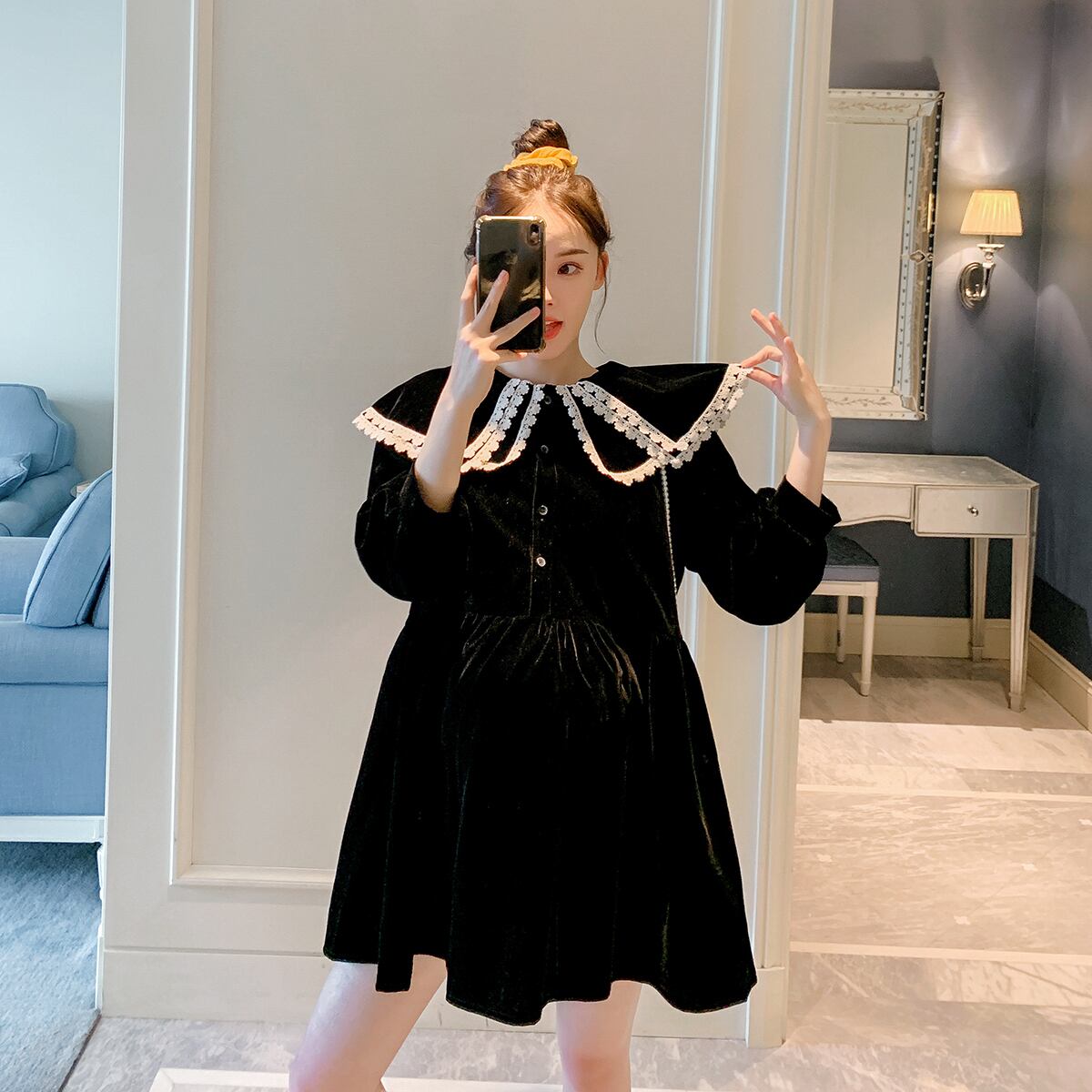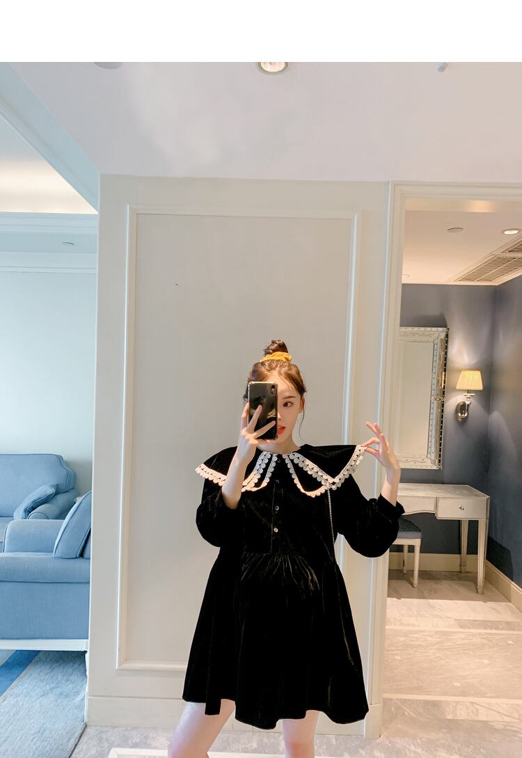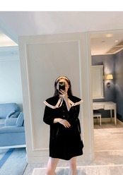 ワンピース ブラックおしゃれ かわいい マタニティウェア レディースドレス スプリングカラールーズベルベットスカート ロング 春物 hotmom87115875206
