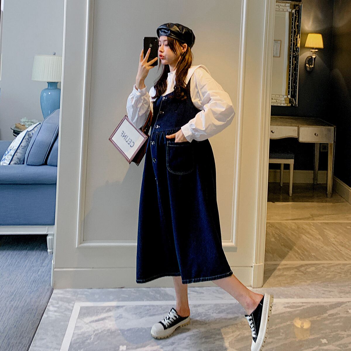 楽々2点セット おしゃれ かわいい マタニティウェア スカート カラーシャツ スプリングオータムルーズロング 春物 秋物 hotmom18140568648