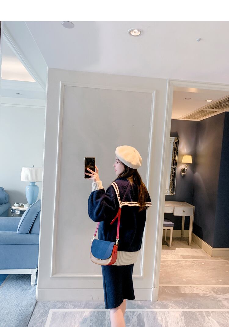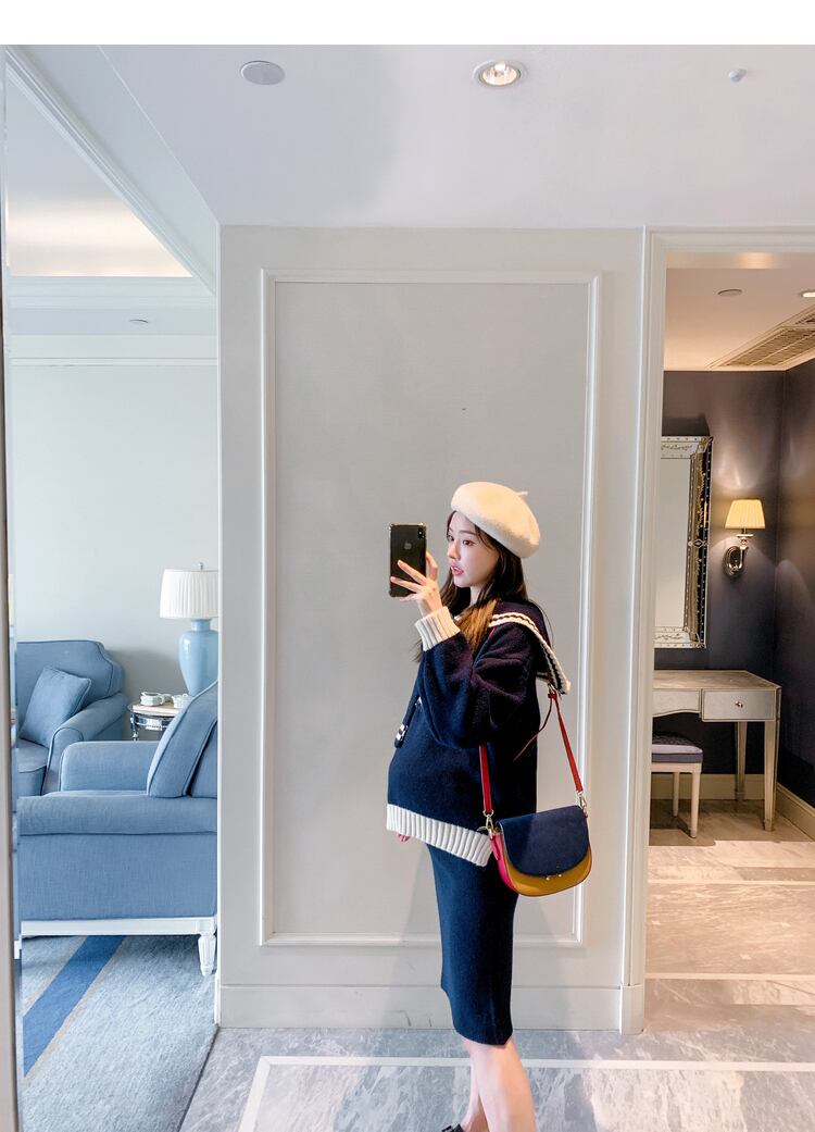 セーラーワンピース おしゃれ かわいい マタニティウェア スプリングオータムニットセーター ネイビー 春物 秋物 hotmom66392363445