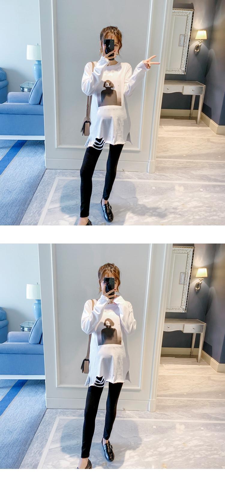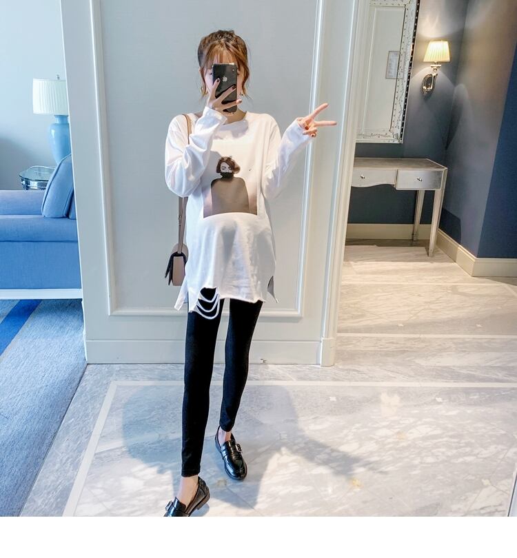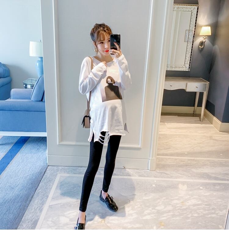 おしゃれ かわいい マタニティウェア ホワイトTシャツ スプリングルーズプルオーバー ブラウス ロング 春物 hotmom81135000525