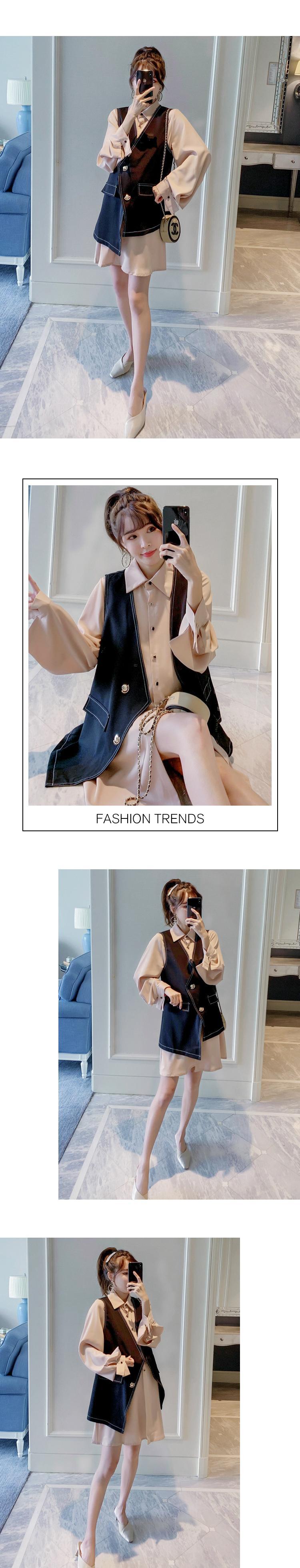 色:カーキ色のシャツ,黒のベスト,カーキブラックスーツ
