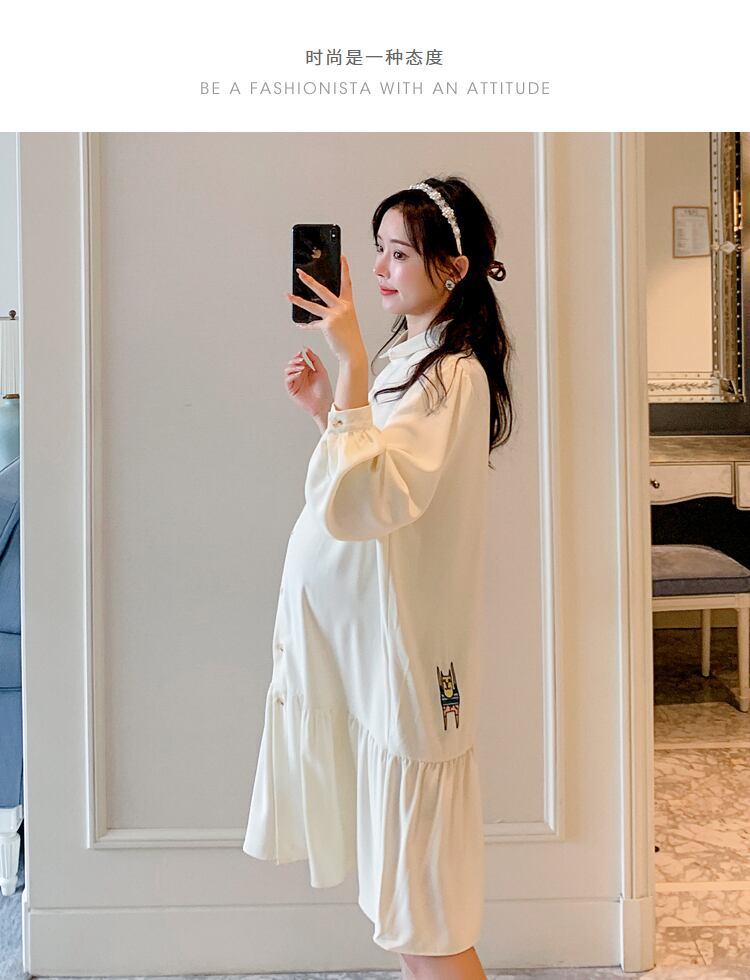 おしゃれ かわいい マタニティウェア シャツ スカート スプリングルーズドレス ロング 大きめサイズ 春物 hotmom16450252913