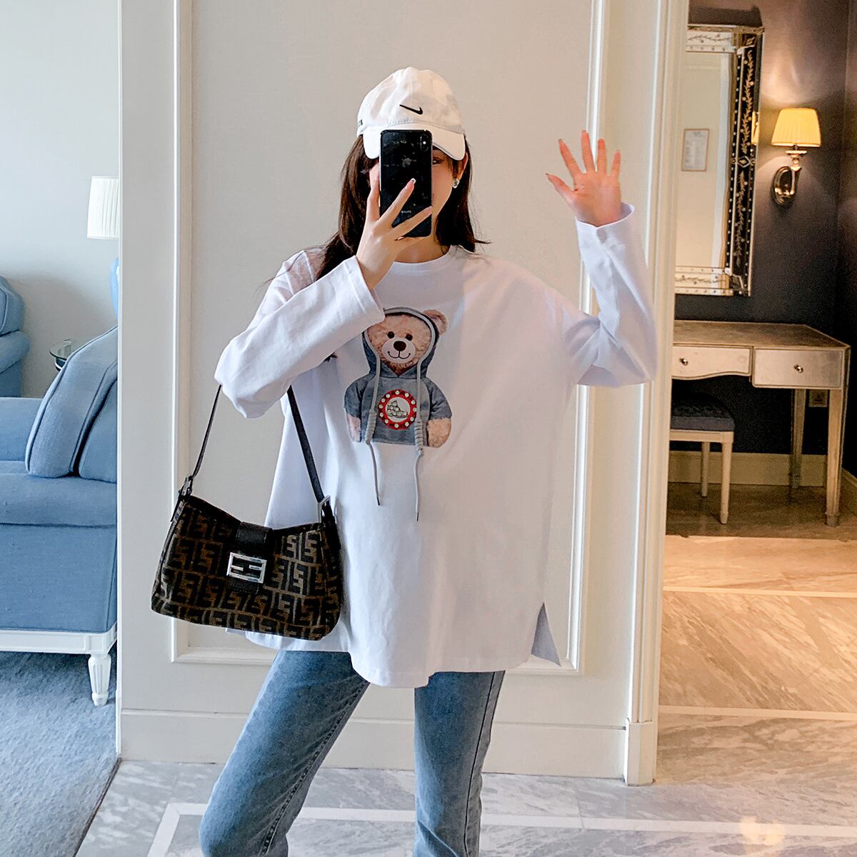 おしゃれ かわいい マタニティウェア ホワイトトップス ロング 大きめサイズ Tシャツ hotmom77586345100