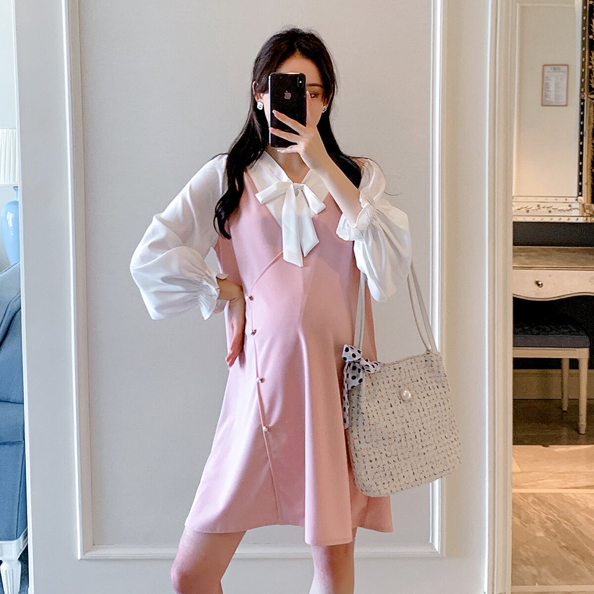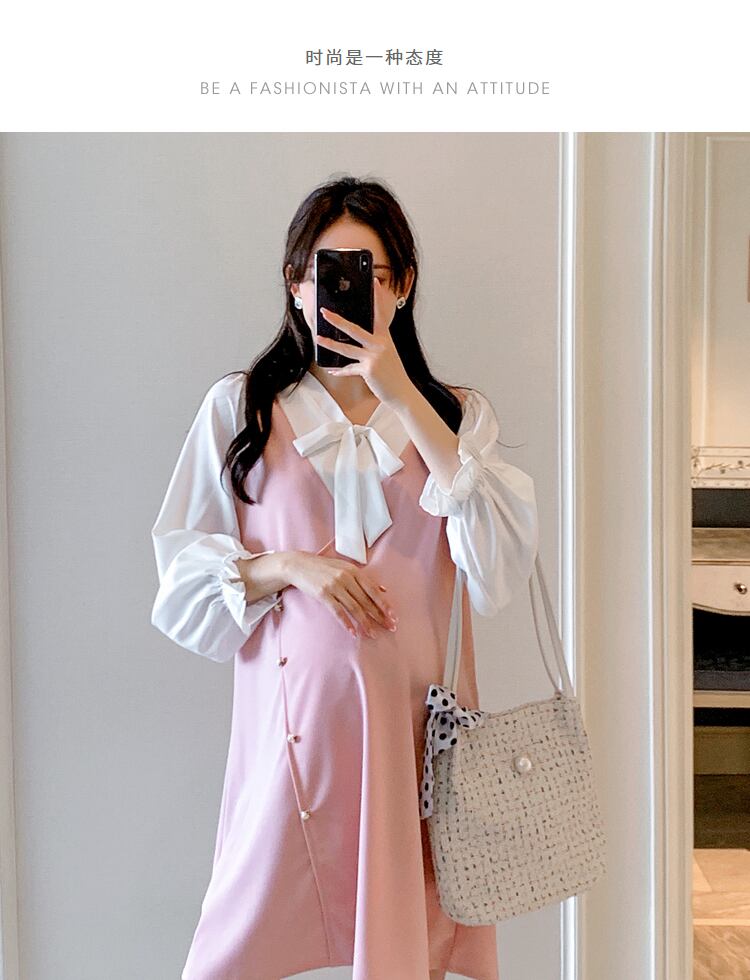 おしゃれ かわいい マタニティウェア カラーシフォンドレス レディーススタイルVネックスタンダードスカート ルーズロング レトロ hotmom5537269479