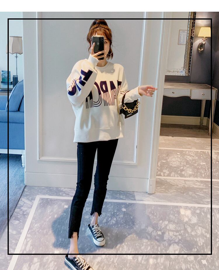 おしゃれ かわいい マタニティウェア ベルベットセーター オータムウィンタールーズプリントトップス 大きめサイズ 秋物 冬物 hotmom68631277533