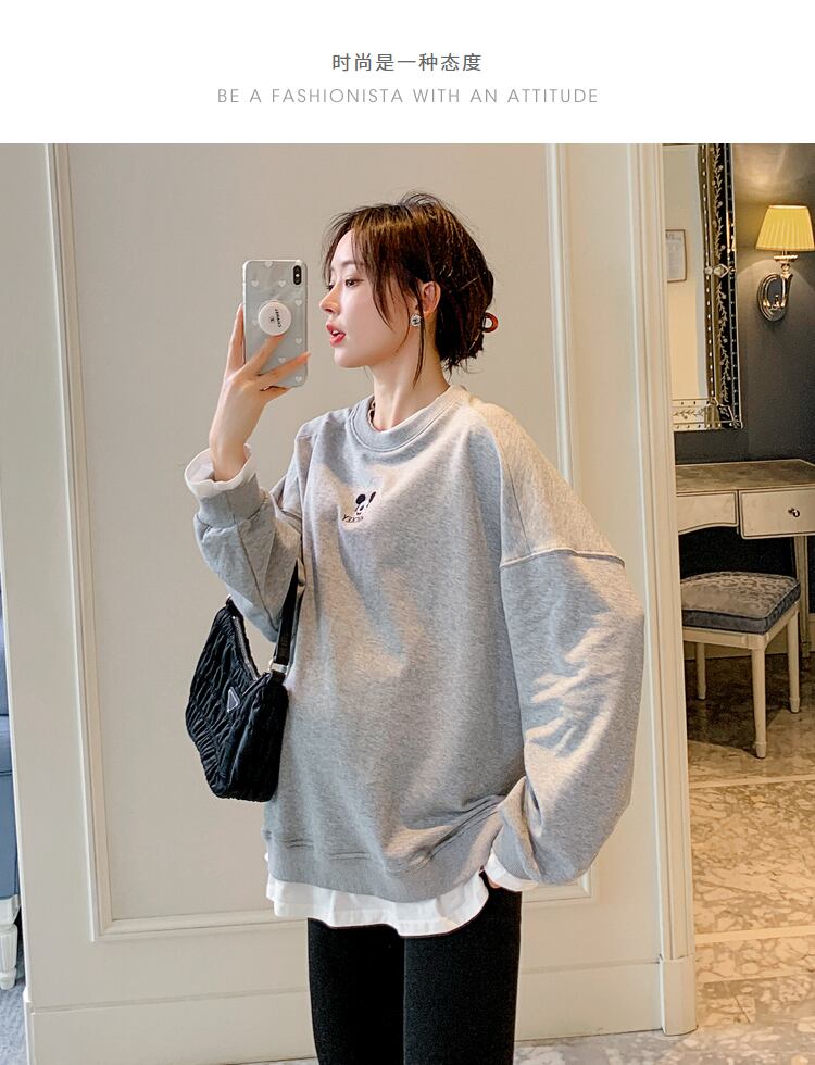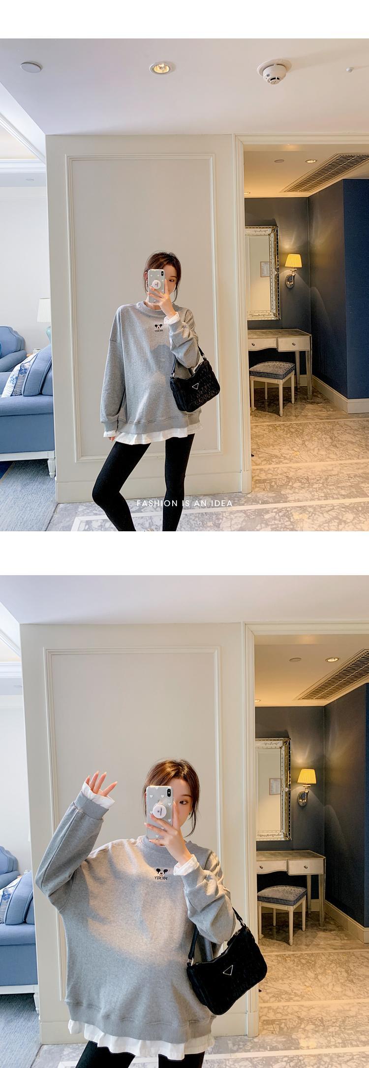 おしゃれ かわいい マタニティウェア レディースセーター パンツ ルーズトップス ロング レッド 刺繍 大きめサイズ hotmom74610857377