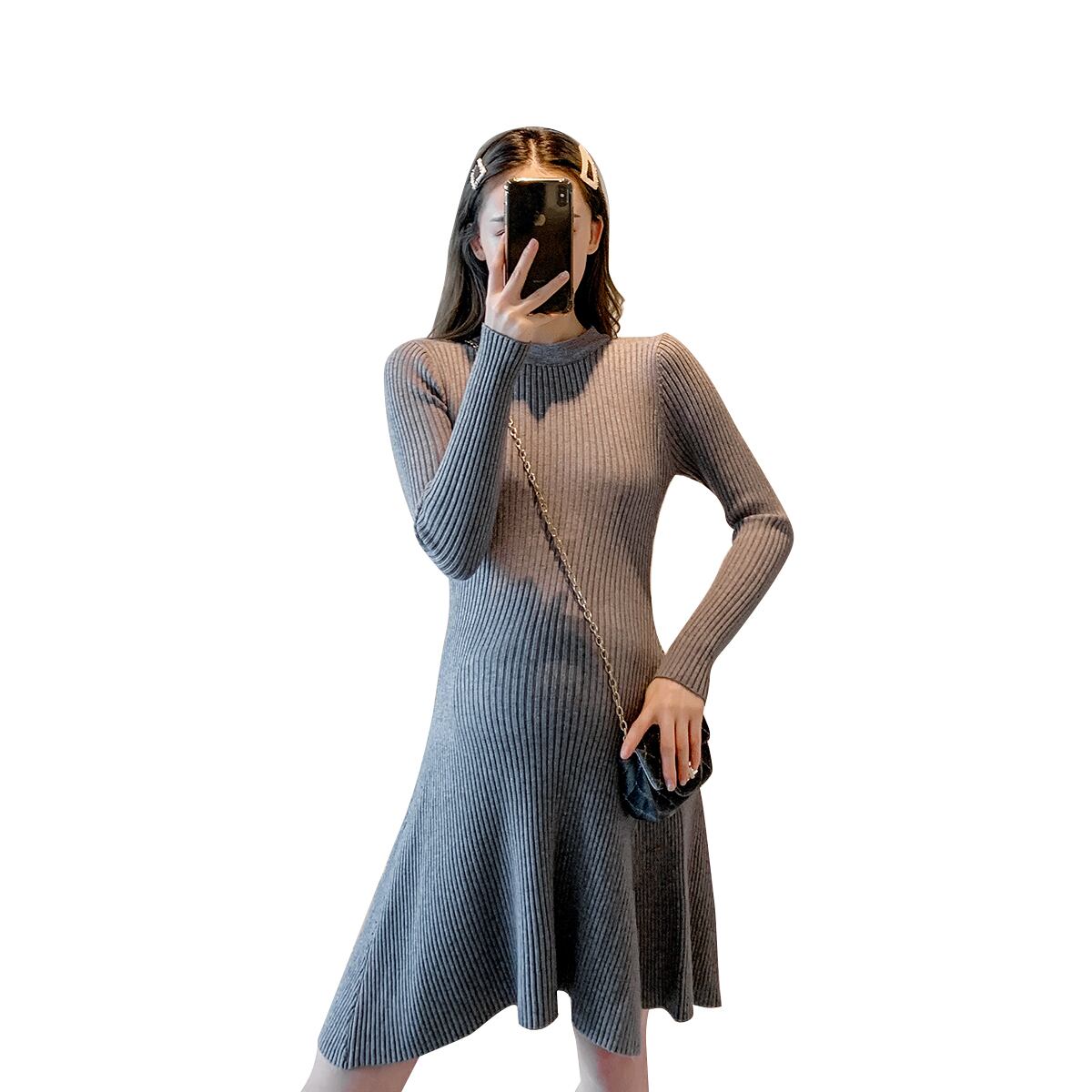 おしゃれ かわいい マタニティウェア ドレス ワンピース オータムニットスカート ロング 秋物 hotmom81660901785