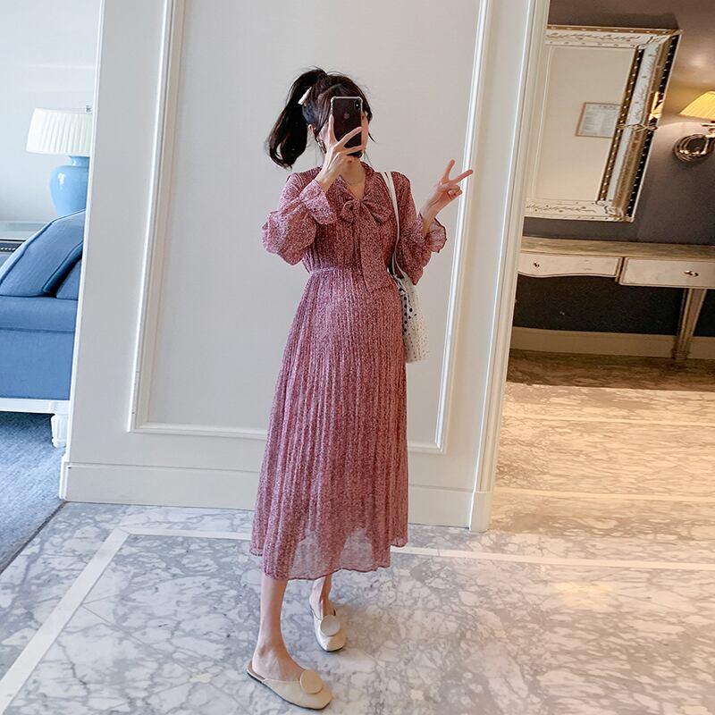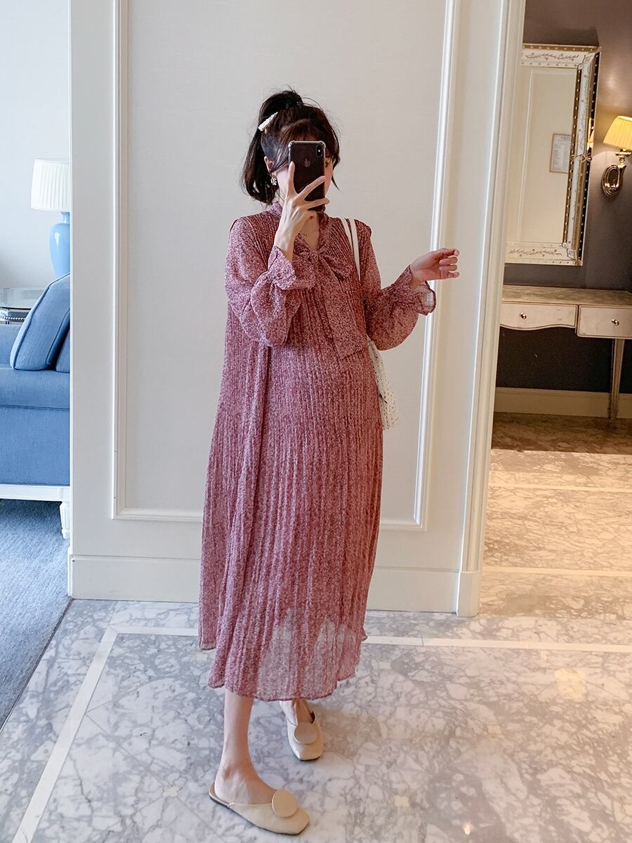 おしゃれ かわいい マタニティウェア スタイルドレス スプリングオータムルーズ薄手フローラル 春物 秋物 花柄 hotmom2621986945