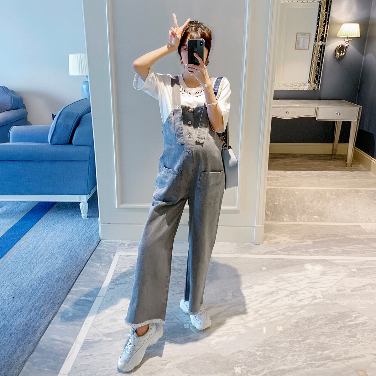 おしゃれ かわいい マタニティウェア スプリングルーズホワイトTシャツ パンツ サマー 春物 夏物 hotmom80069493864