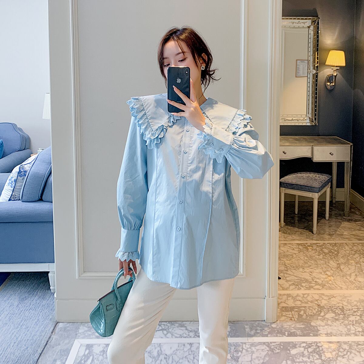 おしゃれ かわいい マタニティウェア スプリングトップス ロング コットン レース 長袖 シャツ 大きめサイズ 春物 hotmom58194210144