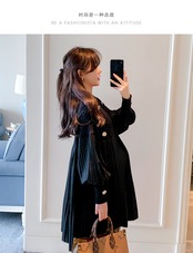 おしゃれ かわいい マタニティウェア ドレス スプリングオータム薄手ニットスカート ルーズウールプリーツ レッド 大きめサイズ 春物 秋物 hotmom80936774907