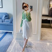 色:白いストラップドレス,フルーツグリーンセーター,白と緑のスーツ、ワンサイズですべてにフィット
