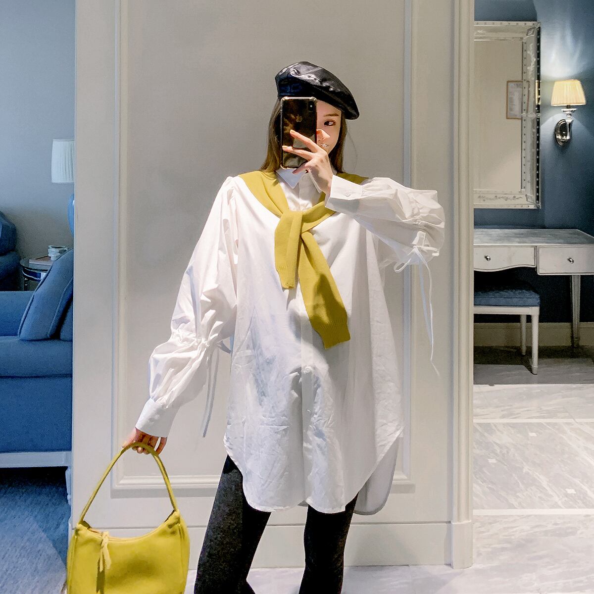 おしゃれ かわいい マタニティウェア レディースホワイトシャツ オータムスタイルロング コットン 秋物 hotmom19762554769