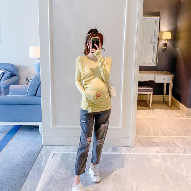 おしゃれ かわいい マタニティウェア プリーツルーズスプリングオータムスタイルTシャツ ロング ブラウス 春物 秋物 hotmom45243632955