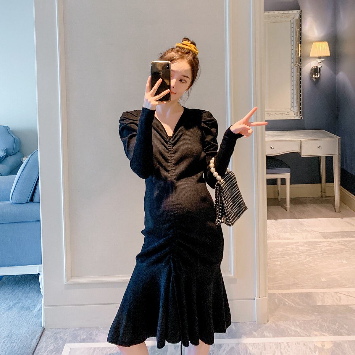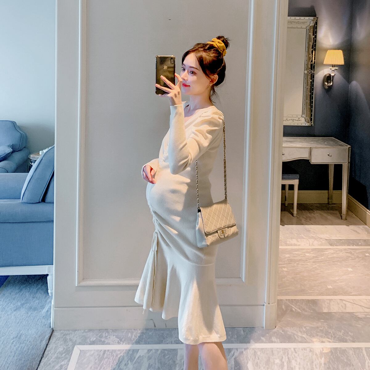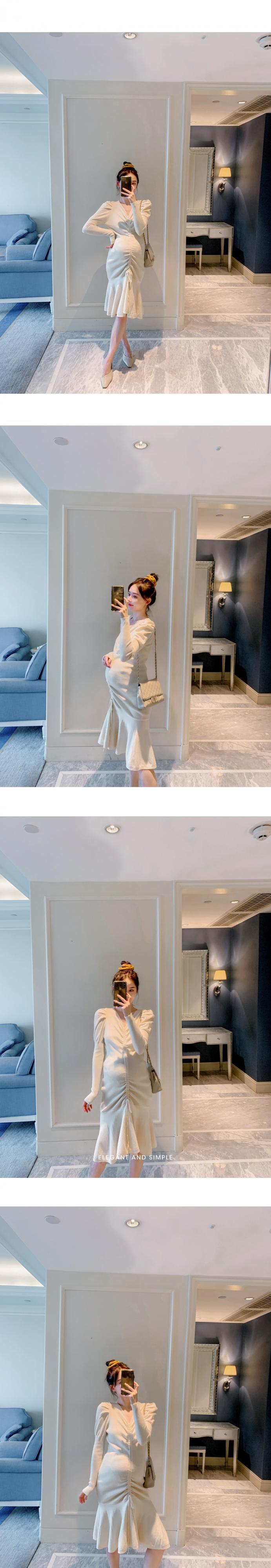 おしゃれ かわいい マタニティウェア ニットドレス 薄手スプリングオータムギャザースカート 春物 秋物 アジャスタブル hotmom44444967744