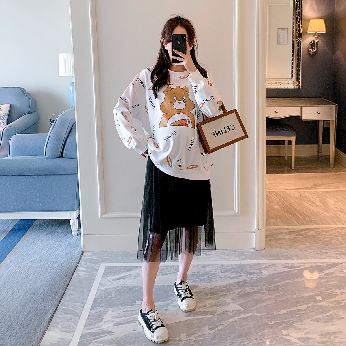 おしゃれ かわいい マタニティウェア セーター ルーズブラックスカート ロング 大きめサイズ hotmom14586713968