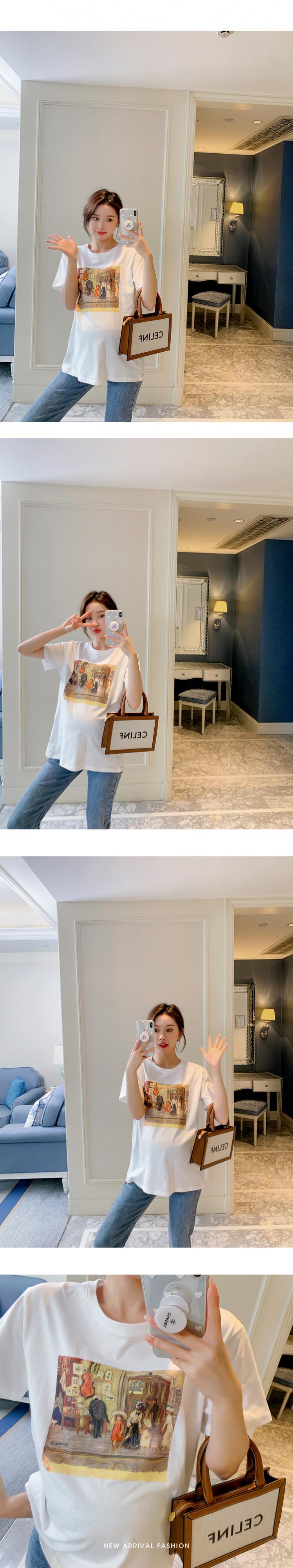おしゃれ かわいい マタニティウェア レディースルーズTシャツ スプリングオータムプリント柄トップス コットン 大きめサイズ 春物 秋物 hotmom47055526495