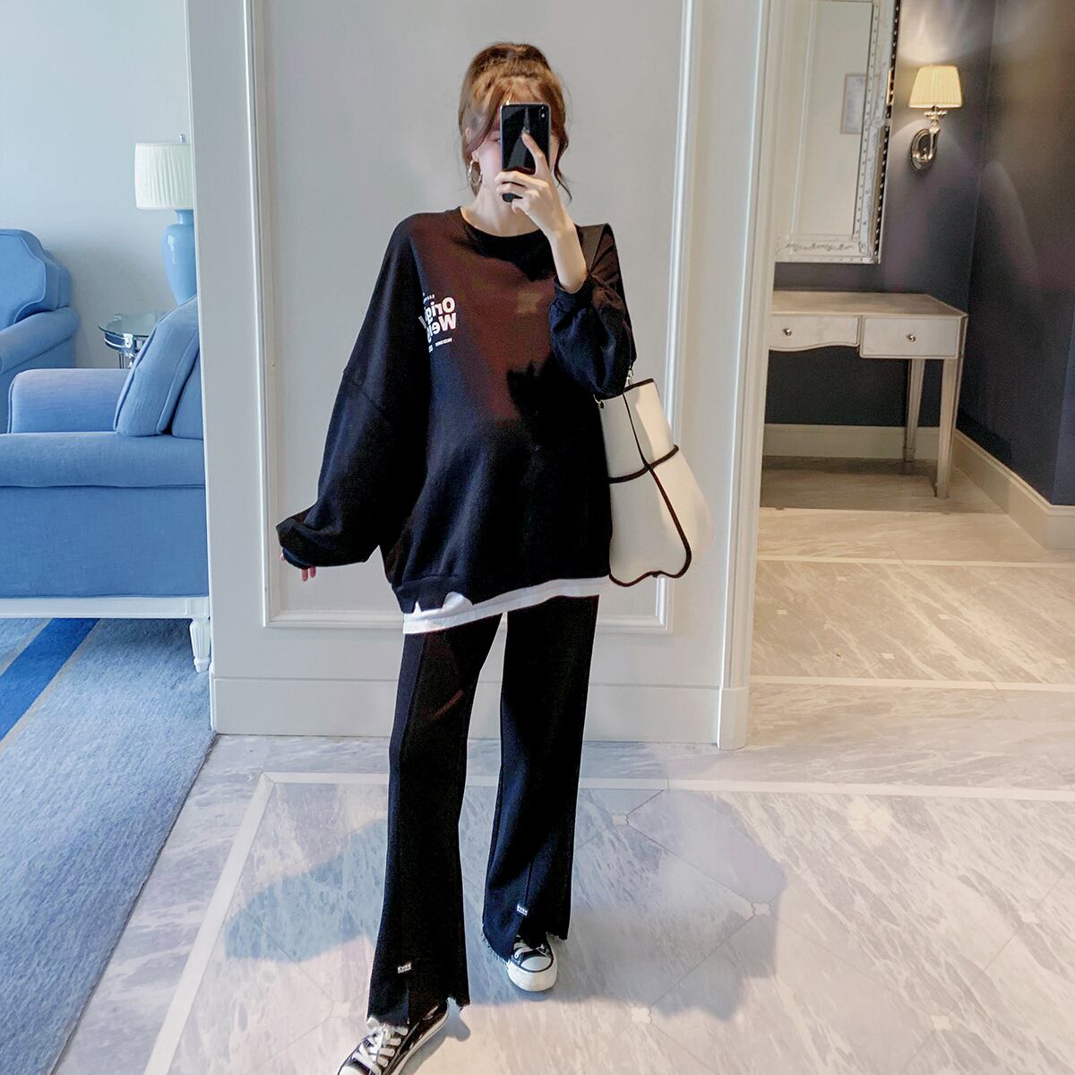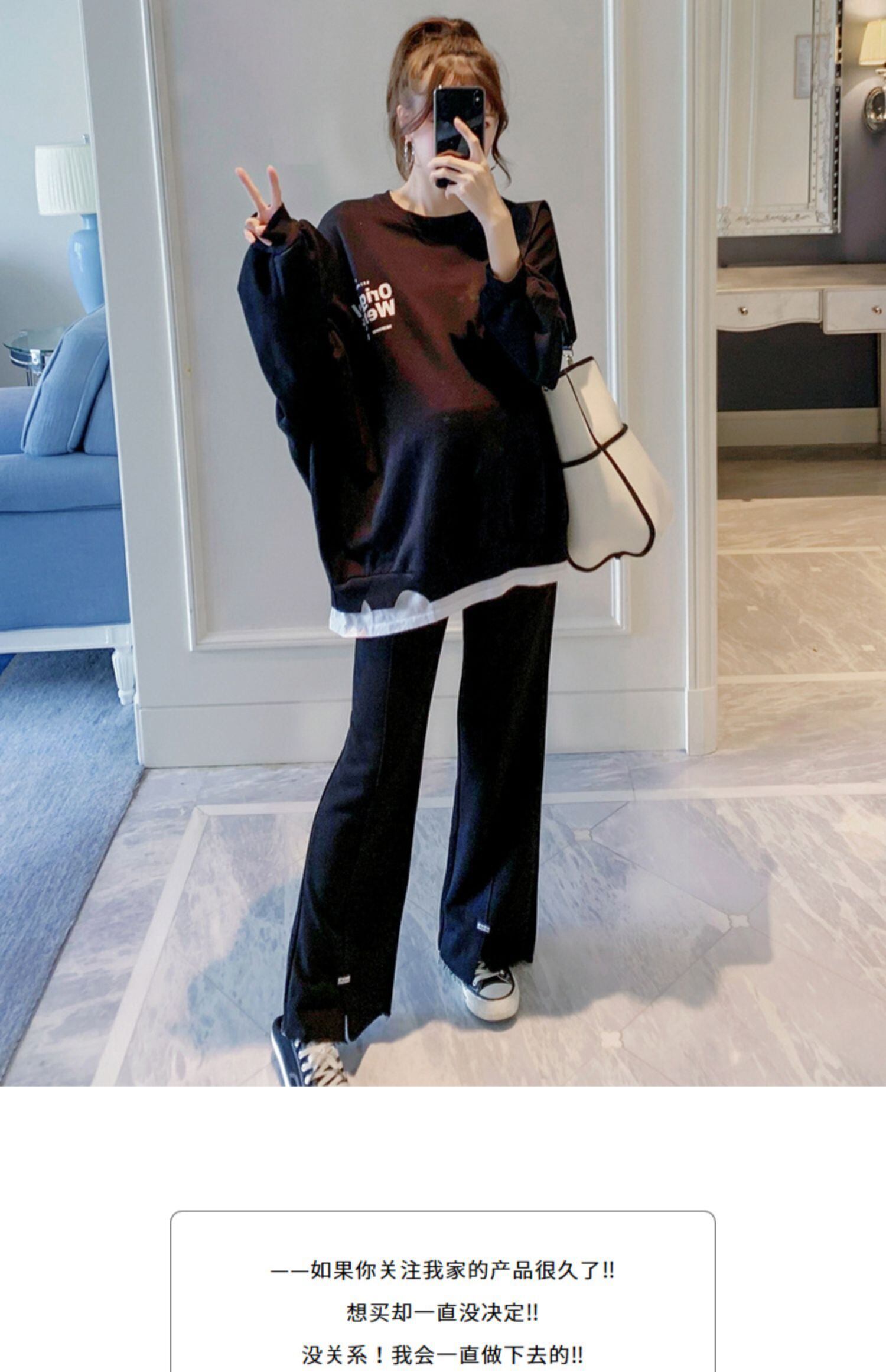 おしゃれ かわいい マタニティウェア スプリングオータムプリントルーズスタイル 春物 秋物 hotmom50287031968