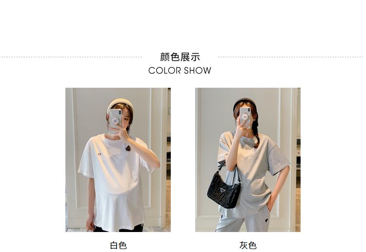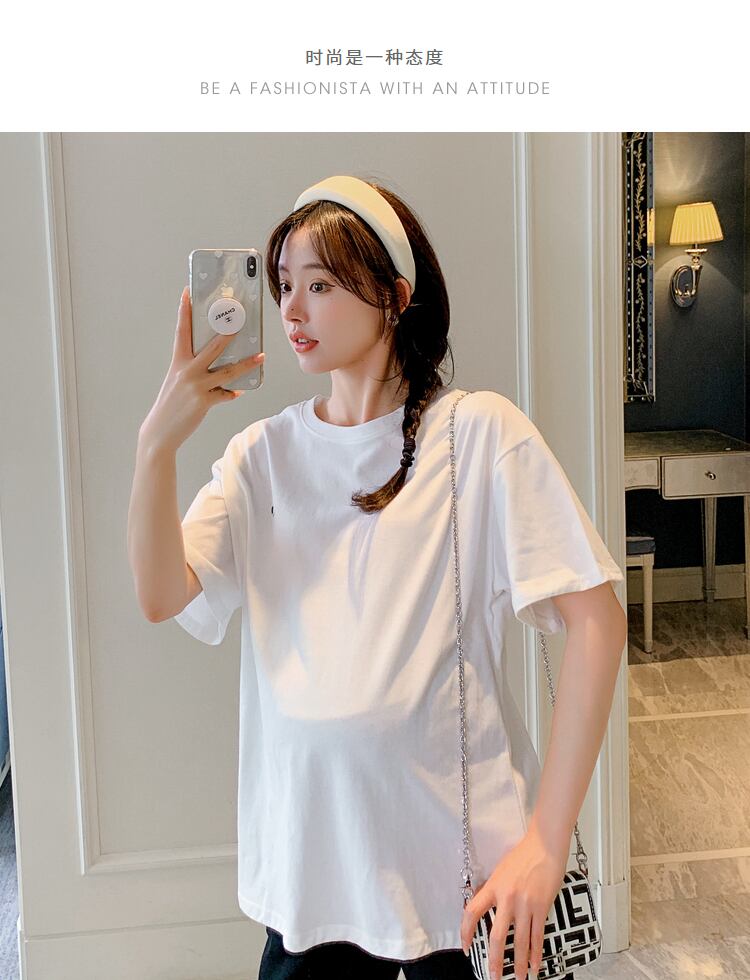 おしゃれ かわいい マタニティウェア ルーズ半袖スリーブ ショート レッド ハーフスリーブ 刺繍 大きめサイズ Tシャツ hotmom15059042345