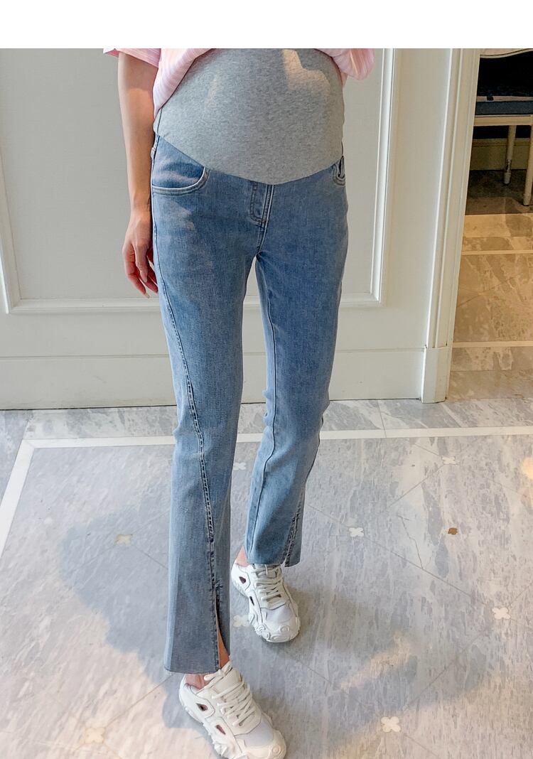 おしゃれ かわいい マタニティウェア ジーンズ スプリングサマールーズクロップド薄手パンツ 春物 夏物 アジャスタブル hotmom72374889172