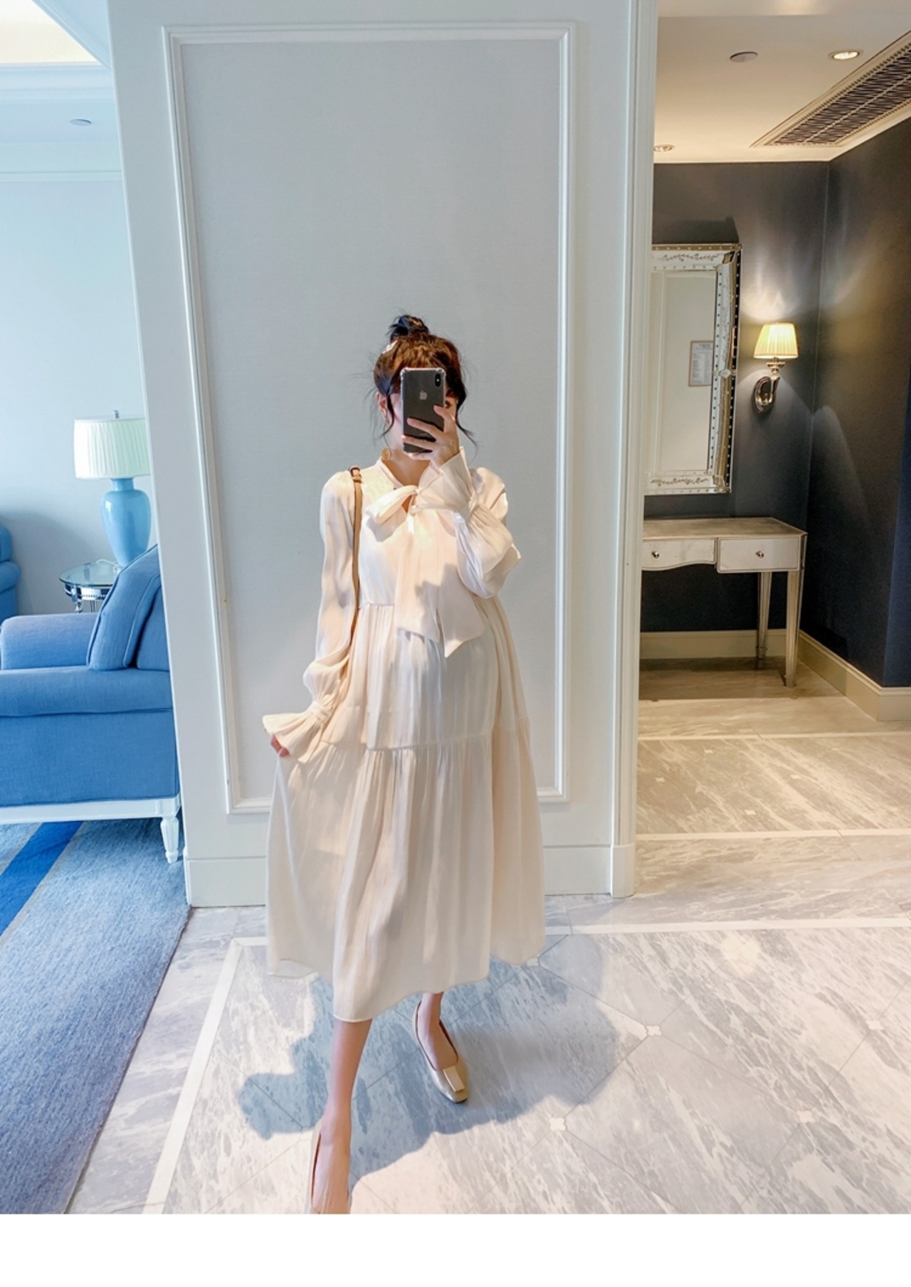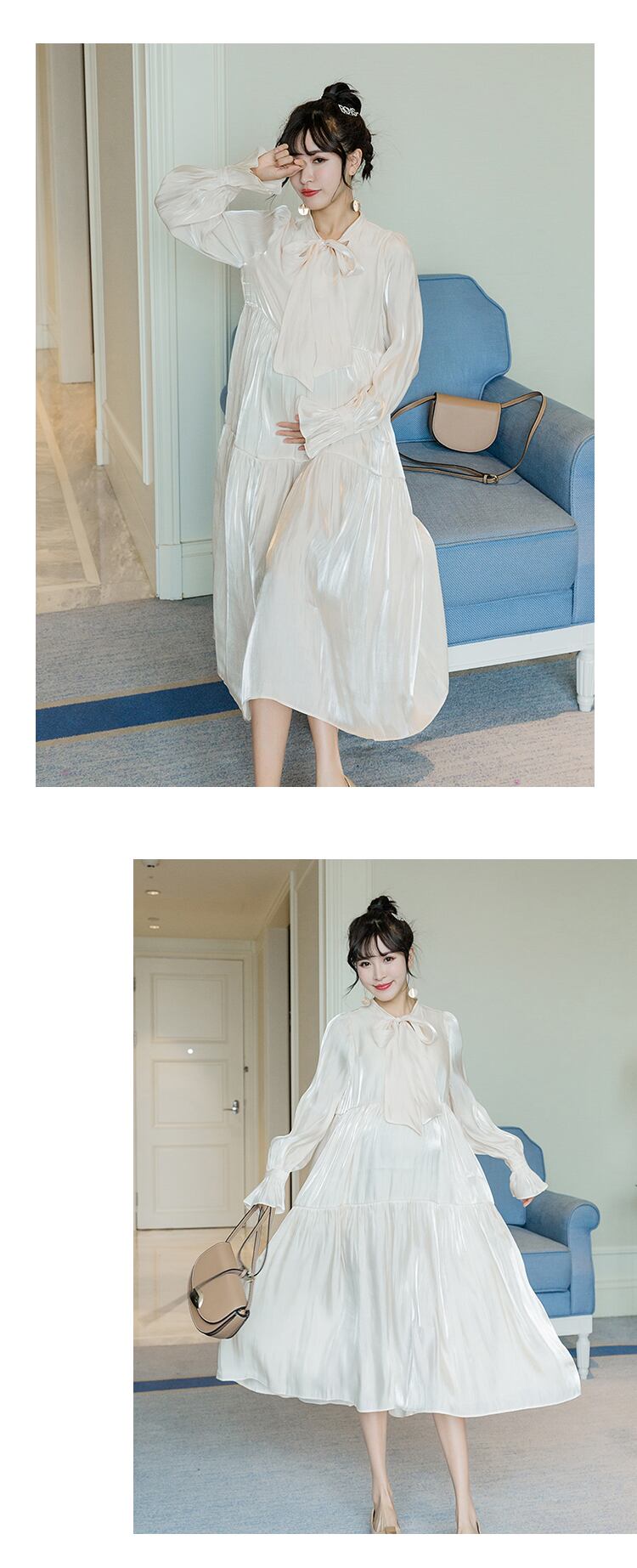 おしゃれ かわいい マタニティウェア スプリングドレス スリーブルーズスタイル 春物 hotmom66572503819