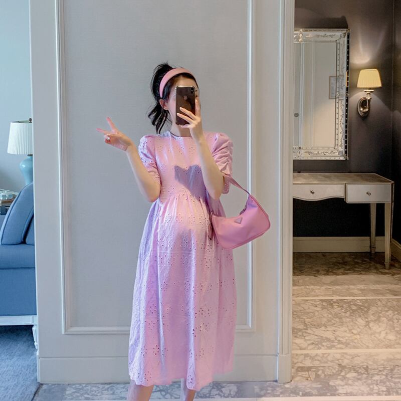 おしゃれ かわいい マタニティウェア ドレス サマールーズスタイルロングレッド 夏物 hotmom67837054787