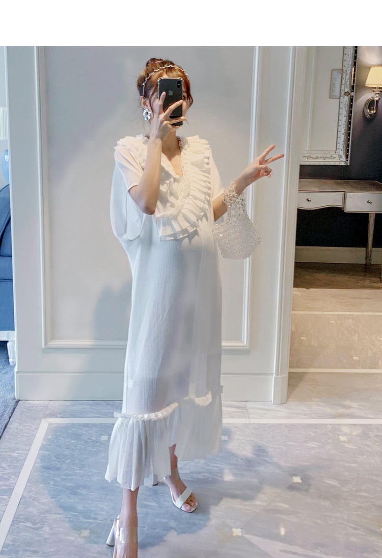 おしゃれ かわいい マタニティウェア スカート プリーツロングスタイルVネック エレガント サマー 夏物 hotmom1370773061