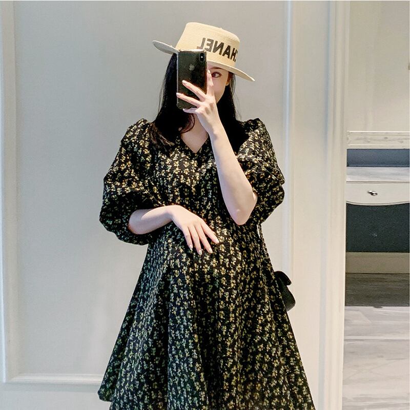 おしゃれ かわいい マタニティウェア プリントドレス スプリングルーズスタイル薄手ロングスカート 春物 hotmom94273530589