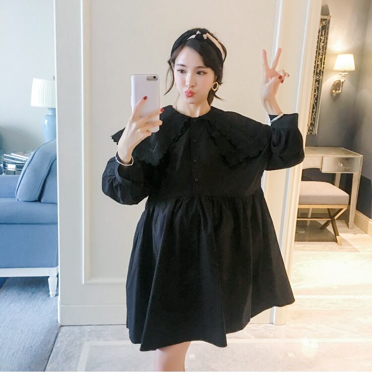 おしゃれ かわいい マタニティウェア オータムスタイルルーズシャツ スカート ハイウェストウェストドレス ロング 秋物 hotmom99297255401