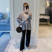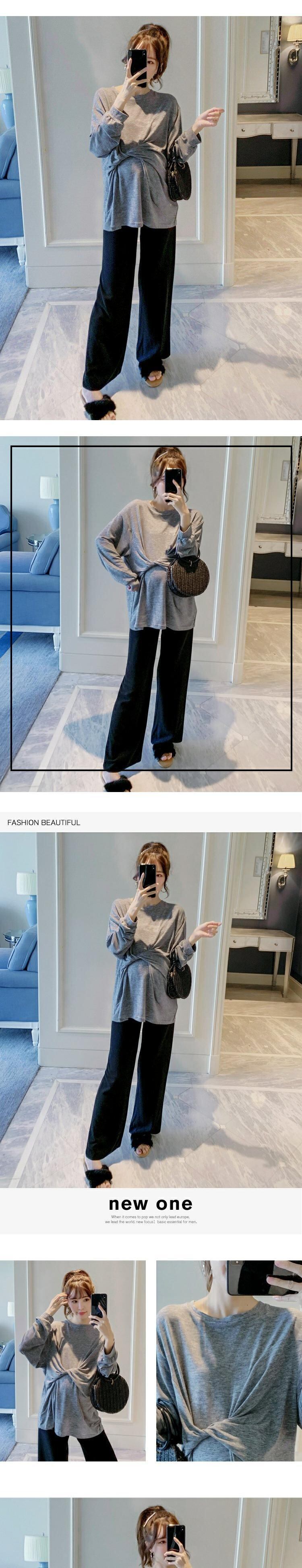 おしゃれ かわいい マタニティウェア セット ドレス スタイルルーズ薄手レッド長袖スリーブワイドレッグパンツ ロング ワイドパンツ hotmom41973524627