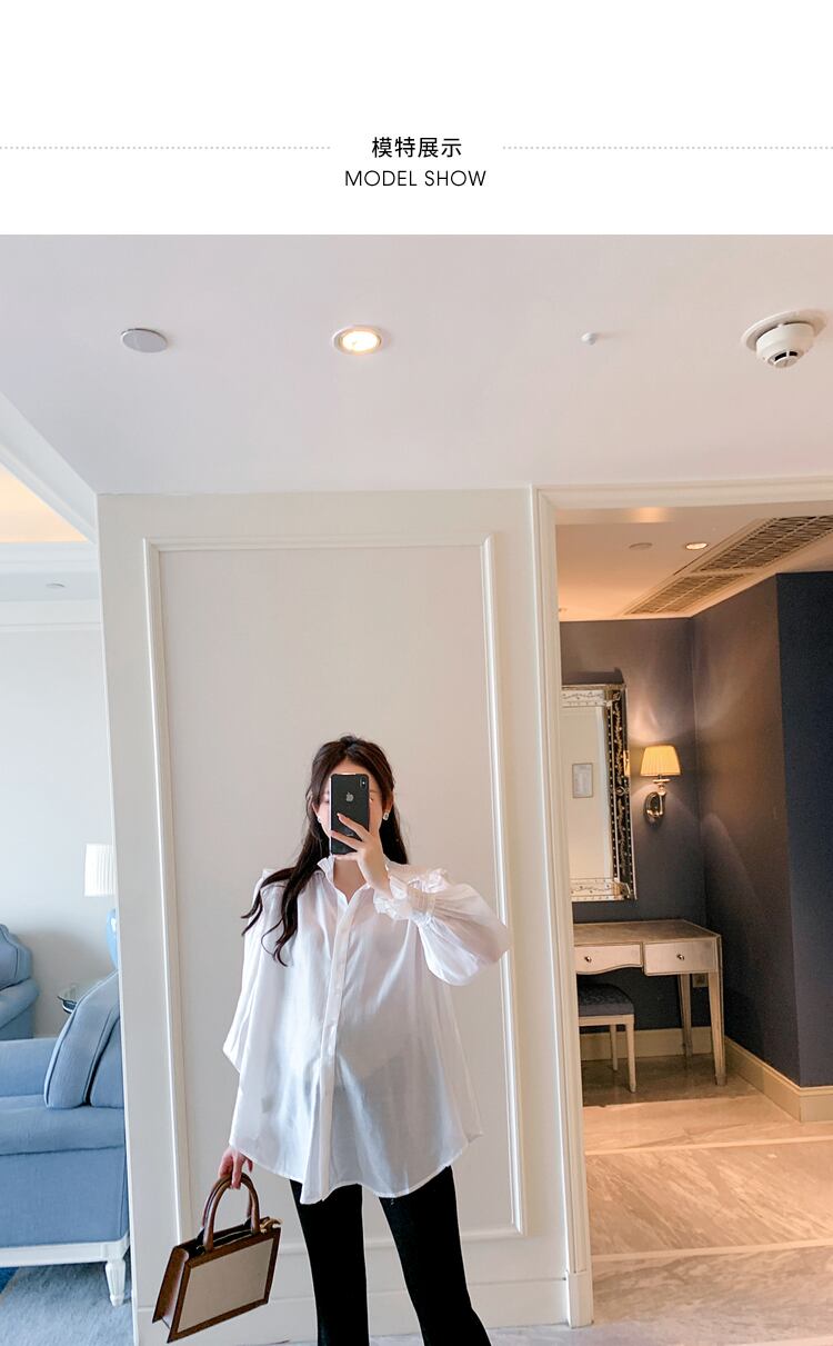 おしゃれ かわいい マタニティウェア スプリングルーズ ロング シャツ 大きめサイズ 春物 hotmom94706108763