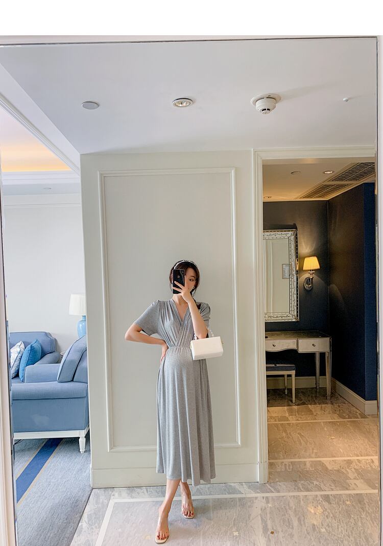おしゃれ かわいい マタニティウェア Vネックドレス ルーズカジュアルスタイルロングスカート サマー 大きめサイズ 夏物 hotmom15835318672