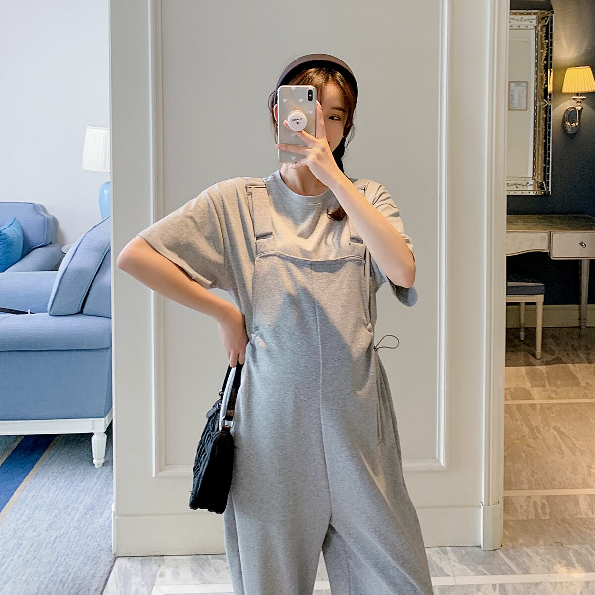 おしゃれ かわいい マタニティウェア セット サマールーズパンツ 半袖スリーブトップス ショート ハーフスリーブ 大きめサイズ 夏物 アジャスタブル hotmom30450322981
