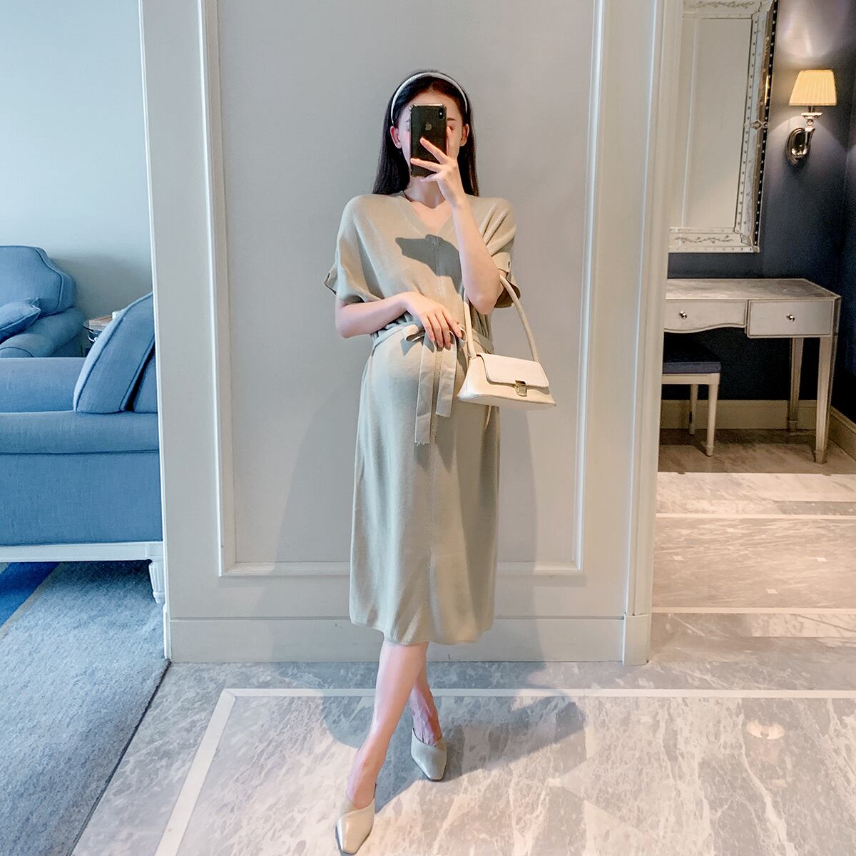 おしゃれ かわいい マタニティウェア ニットドレス ルーズスカート スタイルオータム 大きめサイズ 秋物 hotmom56337714967