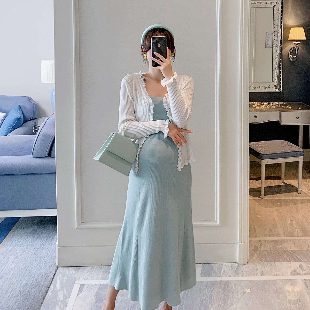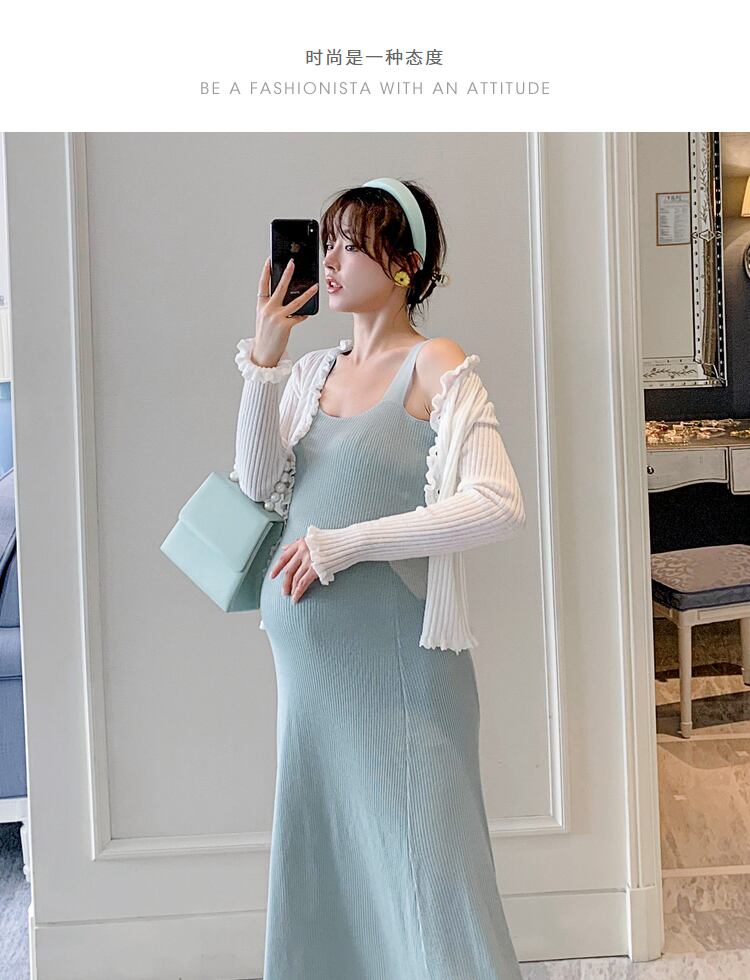 おしゃれ かわいい マタニティウェア ドレス セット ルーズスカート 長袖スリーブジャケット スプリングサマー ロング 春物 夏物 hotmom16188085410
