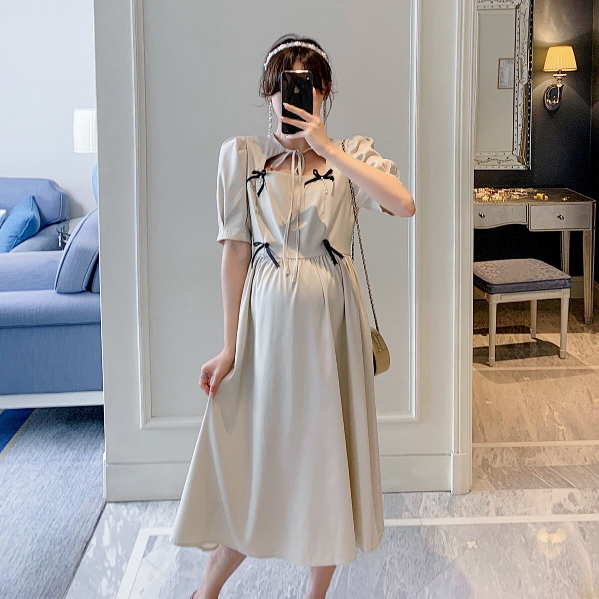 おしゃれ かわいい マタニティウェア サマースタイルロング リボン 夏物 ドレス スカート スクウェア hotmom7141597325