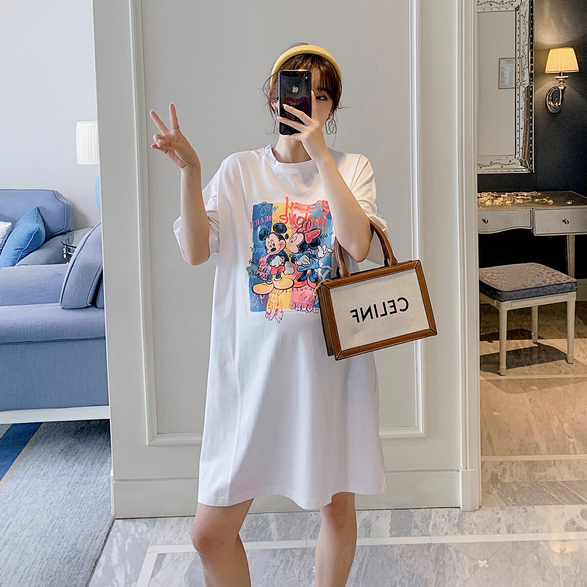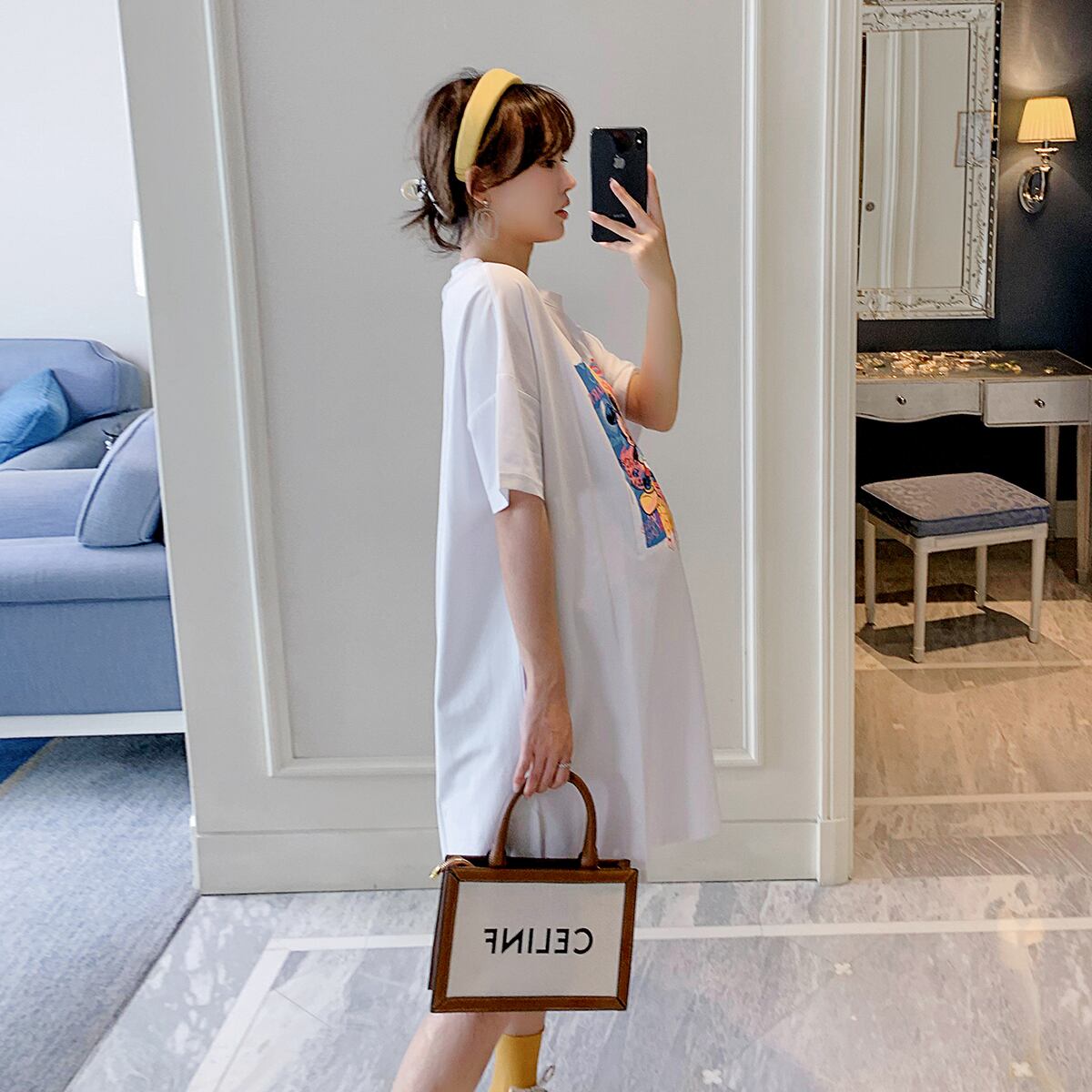 おしゃれ かわいい マタニティウェア ロングTシャツ ルーズサマートップス コットン 大きめサイズ 夏物 hotmom3644128862