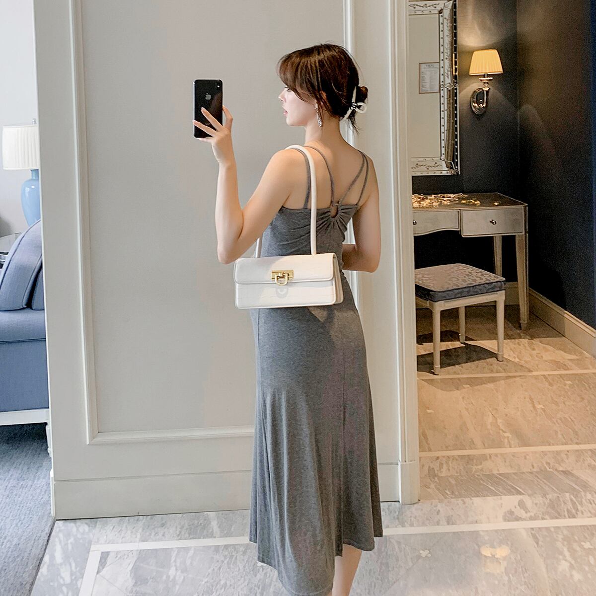 色:グレースカート,黒スカート,白いカーディガン