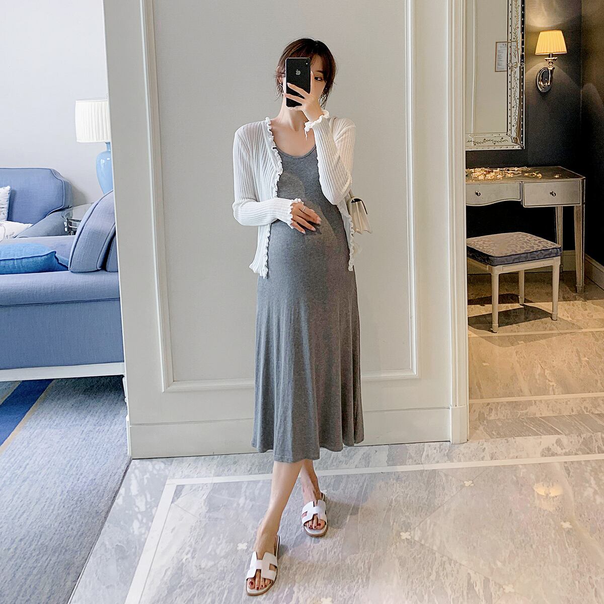 おしゃれ かわいい マタニティウェア スカート カーディガンセット サマーニット ロング 夏物 hotmom46791512381
