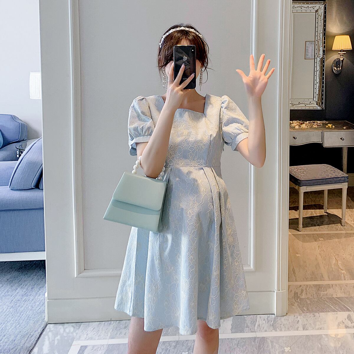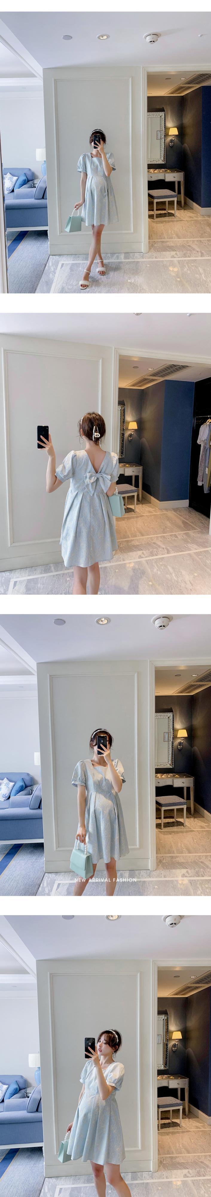 おしゃれ かわいい マタニティウェア ドレス サマーロングスカート プリントスタンダードスタイルVネック リボン レトロ 夏物 hotmom59433999806