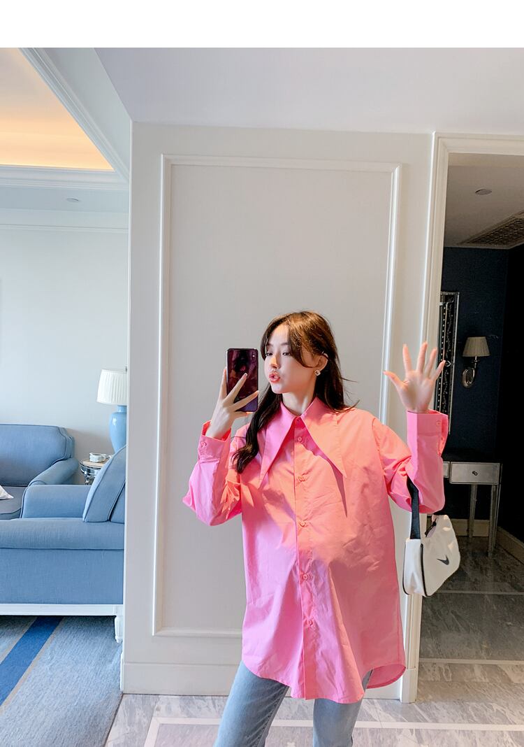 おしゃれ かわいい マタニティウェア シャツ ルーズスタイルカラースプリングオータム ロング 春物 秋物 hotmom68424196855