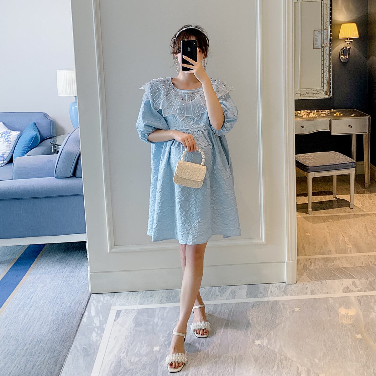 おしゃれ かわいい マタニティウェア レディースドレス ルーズロングスカート レーススタイルサマー 夏物 hotmom48868433948