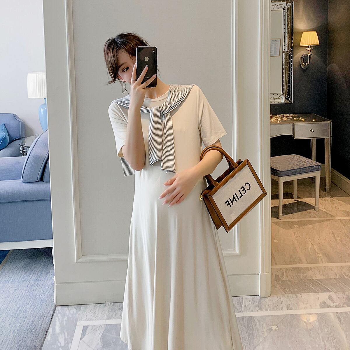 おしゃれ かわいい マタニティウェア ドレス サマーストライプルーズロングスカート コットン 大きめサイズ 夏物 hotmom85597703767