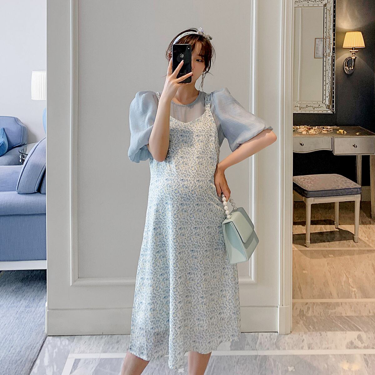 おしゃれ かわいい マタニティウェア スカート スリーブ半袖Vネックロングスタイルサマー ショート ハーフスリーブ 夏物 hotmom52353845256